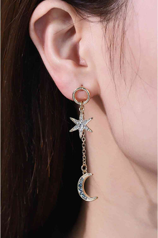 Inlaid Rhinestone Star and Moon Drop Earrings